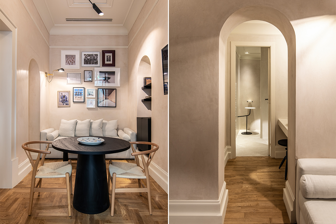 Οι εναλλασσόμενοι ψηλοτάβανοι χώροι με εκλεπτυσμένο και διακριτικό διάκοσμο διατηρήθηκαν σαν φιλοσοφία καθώς επίσης οι διακοσμημένες οροφές αποκαλύφθηκαν από συντηρητές στον χώρο εισόδου του ξενοδοχείου.