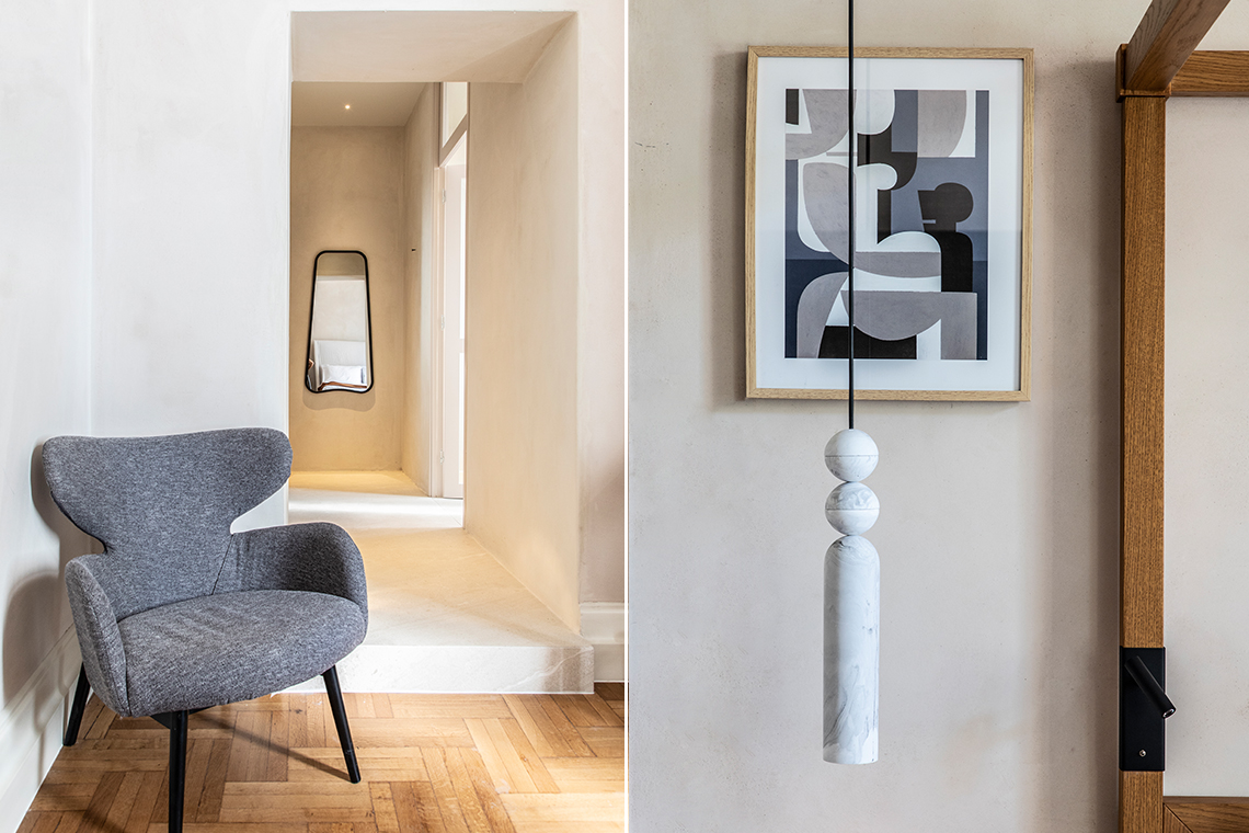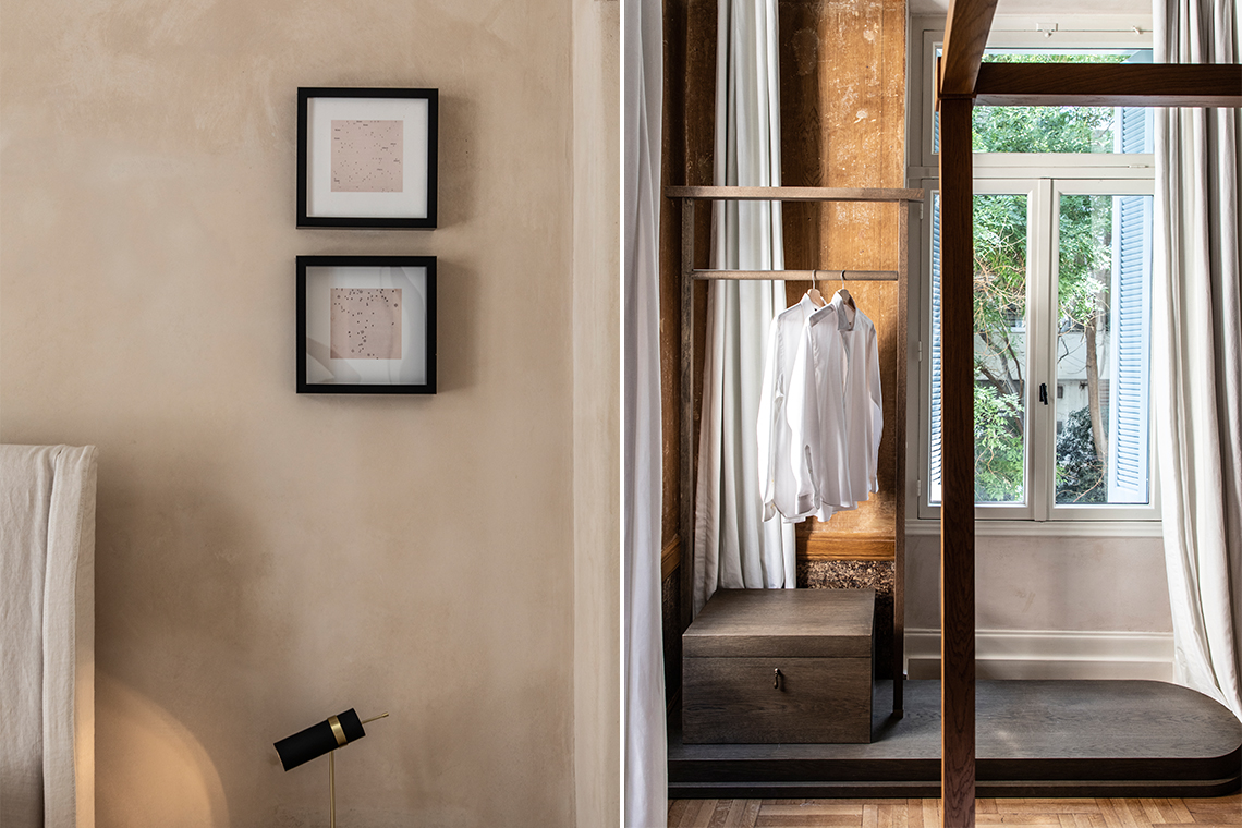 Την επίπλωση επιμελήθηκε το Babatchas Design Studio ως επί το πλείστον με ειδικές κατασκευές. Έπιπλα δηλαδή, σχεδιασμένα εξολοκλήρου για το Monsieur Didot, που αποπνέουν ένα boutique ύφος και εξυπηρετούν τις ανάγκες του ξενοδοχειακού του χαρακτήρα.