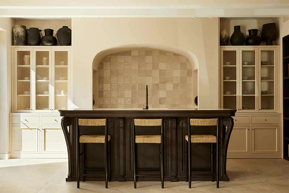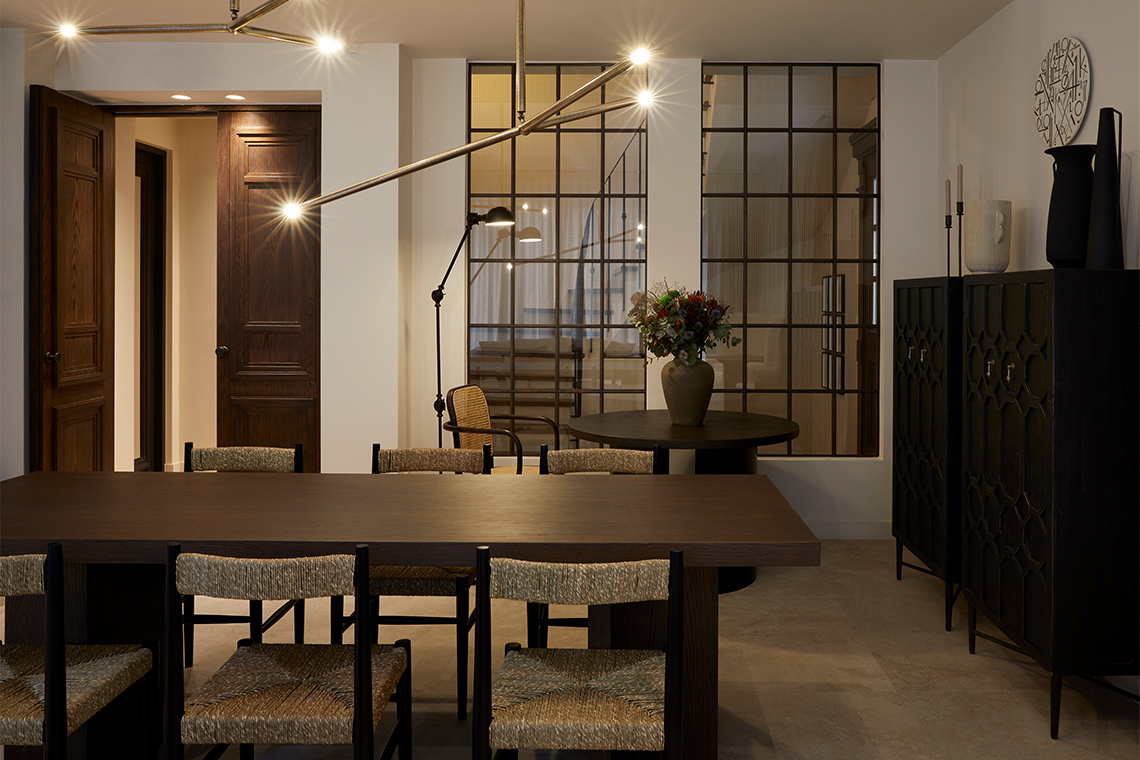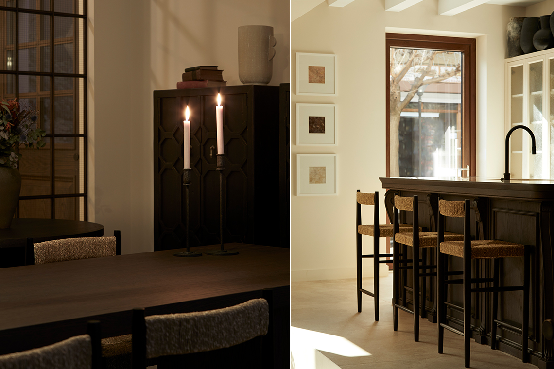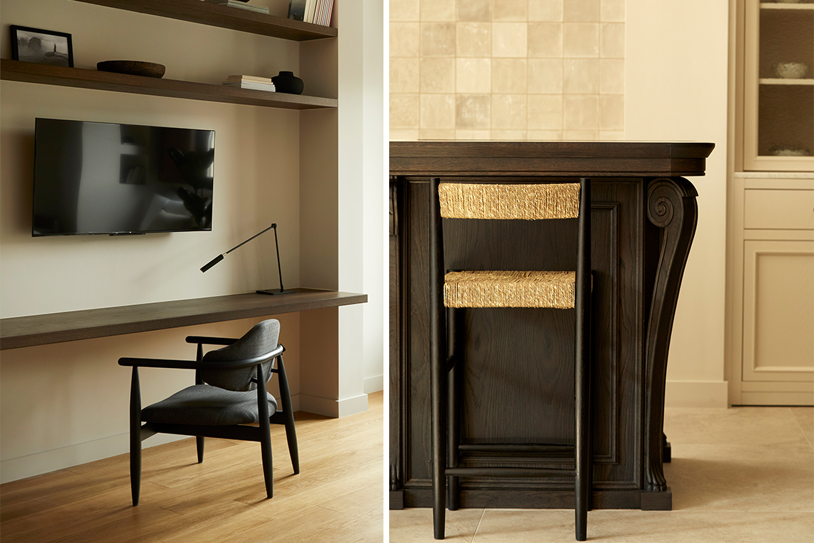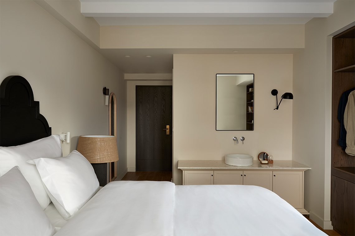 Στο συγκεκριμένο πρότζεκτ, η ομάδα των Babatchas Design Studio δανείστηκε στοιχεία από τη μοναστηριακή καθημερινότητα, όπως τα υλικά και οι χρωματικοί τόνοι που κυριαρχούν στις μονές των Μετεώρων. «Σε αυτό το έργο στόχος μας ήταν να «δέσουμε» την εσωτερική αρχιτεκτονική με το τοπίο. Στη συνέχεια αναζητήσαμε την ουσία της τοπικής μοναστηριακής αισθητικής και την εντοπίσαμε στην μορφολογική ισορροπία ανάμεσα στο απλό και στο αυστηρό, μεταξύ βυζαντινού πλούτου και ασκητικής λιτότητας» αναφέρει η σχεδιαστική ομάδα. Τα δωμάτια ντύνουν τα λινά, πετροπλυμένα βαμβακερά υφάσματα και τα μαξιλάρια από τάπητες ενώ οι δρύινες βουρτσιστές επιφάνειες και τα μάρμαρα Perla και Boticcino κυριαρχούν στους χώρους.